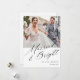 Carte de vacances personnalisée pour jeunes mariés avec une conception de calligraphie moderne et un message de vacances personnalisé avec photo.
