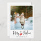 Carte de Noël moderne avec une grande photo, script de calligraphie, mitaines rouges et message personnalisé.