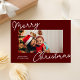 Calligraphie Rouge Joyeux Noël Carte de vacances photo moderne. Envoyez des voeux de vacances personnalisables et personnalisés à vos amis, collègues et famille dans des cartes de style simple, chic, élégant et moderne design photo festif, naturel minimaliste! Ci-dessous la calligraphie présente votre message de voeux personnalisé dans la typographie moderne.