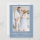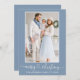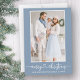 Modern Calligraphy Heart Script Merry Christmas Photo Holiday Card - Dusty Blue Background