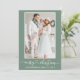 Modern Calligraphy Heart Script Merry Christmas Photo Holiday Card - Sage Green Background
