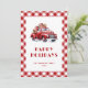 Cartes de vacances personnalisées à carreaux rouges gingham avec un camion rouge classique. Personnalisez facilement ces cartes de vacances hivernales au camion rouge aquarelle avec le nom de votre famille.
