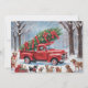 Cartes Pour Fêtes Annuelles Camion rouge de Noël dans le bois enneigé avec des