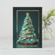 Un sapin de Noël turquoise joliment décoré, dressé contre un arrière - plan vert foncé et serein, est orné d'un unique ruban d'or qui serpente du haut au bas. Le ruban doré délicat semble briller doucement dans la lumière. L'arbre turquoise et le ruban doré, représentent des symboles de la conscience du cancer de l'ovaire et ajoutent une touche d'élégance et de sens à la scène festive. Ce design intemporel est idéal pour tout professionnel, professionnel ou professionnel en oncologie gynécologique qui recherche une carte de fin d'année à envoyer à ses clients, clients, amis et famille cette saison festive qui transmet un message bienveillant. Il y a des modèles supplémentaires pour votre code qr (ou le remplacer par votre logo) et la photo du personnel au dos. Elles sont idéales pour transmettre l'esprit de la saison. Joyeuses vacances !