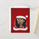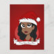 avec l'illustration d'une belle jeune femme afro-américaine aux cheveux ondulés et casquette du Père Noël ; avec le modèle texte modifiable, les fêtes de Noël sur un arrière - plan rouge, par Radka Kavalcova