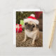 Cartes Pour Fêtes Annuelles Carlin en Casquette du Père Noël assis sur un tapi