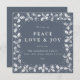 Cartes Pour Fêtes Annuelles Carré Bleu Main Imprimée Holly Peace Love + Joy
