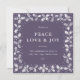 Cartes Pour Fêtes Annuelles Carré Purple Main Imprimée Holly Peace Love + Joy