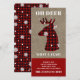 Cette carte de Noël drôle lit OH CERF QUELLE ANNÉE autour d'une tête de cerf à carreaux de bison. Le verso de la carte est un carreau de bison tendance avec des flocons de neige.
