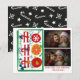 Carte de vacances de Noël Ho Ho Ho en typographie rouge avec des illustrations mignonnes. Personnalisez facilement avec votre propre nom et 2 photos.