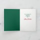 Sur le devant de cette carte de Noël, un adorable chien Cavalier King Charles Spaniel est assis à côté d'un Holiday tree joliment décoré. Le chien est en train de chercher tandis qu'un oiseau rouge Bullfinch est sur le point d'atterrir sur l'arbre. Un panier de cadeaux en osier se trouve devant l'arbre. Le texte rouge et vert dit "JOIE DE Noël". À l'intérieur sont deux champs de texte que vous pouvez customiser, ou laisser tel quel.