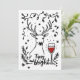 Un design de vacances de Noël amusant et joyeux présente le contour d'un cerf entouré de flocons de neige et de branches de fougère. À côté des branches se trouve un verre de vin rouge. Le texte manuscrit indique "Ivre et lumineux". Ce design est présenté sur une variété de produits, ce qui en fait un cadeau parfait pour les amateurs de vin.