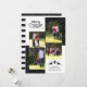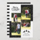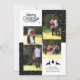 Cerf noir et arbre Joyeux Noël typographie carte de collage photo de vacances avec quatre photos. Il comporte quatre photos de famille et les coins sont recouverts de neige pois blanche sur le noir tandis que le dos comprend des rayures noires et blanches avec de la neige. Photographie © Storytree Studios, Stanford, CA