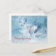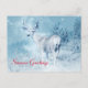 Carte postale Joyeuses Fêtes avec un message de vacances au dos. Conçu avec l'image d'un cerf majestueux en hiver. Un arrière - plan filtré bleu glacé donne à cette photo un air froid d'hiver avec une sensation magique. Un cerf noble se dresse sur une colline avec des pins d'hiver en arrière - plan.