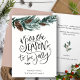 Envoyez des voeux et des salutations chaleureux de vacances à vos amis et votre famille en carte de fin de année simple, mignon, chic, élégant et moderne non photo design festif, nature couleur style! Un beau cadre de pignons de pin vert doux peint aquarelle avec de jolis cônes de pin marron devant. Le milieu présente l'accueil " c'est la saison d'être joyeux " dans la typographie manuscrite lettrée, avec votre message personnalisé et nom en dessous. Souhaitez à tous un Joyeux Noël et une Bonne Année !