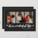 C'est Une Vie Merveilleuse Black Christmas 3 Photo Collage Holiday Card. Envoyez des voeux de vacances personnalisables et personnalisés à vos amis, collègues et famille dans des cartes de style simple, chic, élégant et moderne design photo festif, naturel minimaliste! Ci-dessous la calligraphie présente votre message de voeux personnalisé dans la typographie moderne.