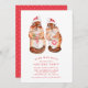 Cette invitation à la fête de Noël présente des écureuils d'aquarelle portant des chapeaux de Père Noël. Placez-vous contre un arrière - plan blanc avec un dossier à pois rouge et blanc. Personnalisez ce design personnalisé avec vos propres détails de fête de vacances. Parfait pour une fête de Noël d'entreprise ou pour une famille.