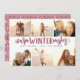 Notre design festif et élégant de cartes de vacances est la façon parfaite de montrer six de vos photos de famille préférées. Le design présente "Chaleureux Souhaits d'hiver" à la main lettrée typographie de prune bordeaux sur un arrière - plan blanc. Personnalisez avec vos noms et l'année pour un accueil de Noël personnalisé chic.