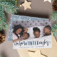 Que vous soyez chaud ou cool, partagez des salutations douillettes avec nos cartes photos avec des "voeux chauds d'hiver" comme un texte superposé dans les nuances de bleu foncé hivernal. Ajoutez votre photo horizontale ou paysagère préférée, et personnalisez avec votre nom de famille et un message ou un message personnalisé en bas. Les cartes retournent à un motif de pull nordique douillet.