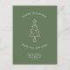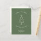 Moderne, simple Changement d'adresse carte postale pour les vacances! Un sapin de Noël minimaliste Illustration et typographie de machine à écrire lisant "Joyeux Noël de notre nouvelle maison" dans un design vert et ivoire. Sur le dos, il y a de l'espace pour un message personnalisé, des Bonnes Fêtes et une illustration festive du faux-pied.