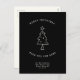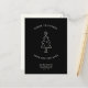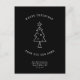 Moderne, simple Changement d'adresse carte postale pour les vacances! Un sapin de Noël minimaliste Illustration et typographie de machine à écrire lisant ' Joyeux Noël de notre nouvelle maison ' dans un design noir et blanc. Sur le dos, il y a de l'espace pour un message personnalisé, des Bonnes Fêtes et une illustration festive du faux-pied.