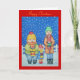 L'illustration originale de Noël sur cette carte de voeux de Noël a trois chanteuses de carol mignonnes qui chantent avec enthousiasme un air festif dans la neige de décembre. La neige tombe tout autour d’eux, mais ils sont chaudement enveloppés dans leurs casquettes rayés et écharpes tricotés rouges et jaunes et rouges et verts pour garder le froid de l’hiver. Cette image originale et humoristique de Noël des trois petits chanteurs semble très saisonnière sur cette carte d'art originale, les couleurs sont agréables et lumineuses pour apporter une joie festive et un sourire au visage des personnes spéciales qui la reçoivent comme un message de Noël de votre part. La carte a un court verset festif simple mais réfléchi qui convient à envoyer à la famille et aux amis, il fait également une carte de Noël pour enfants mignonne. Le verset à l'intérieur de la carte et l'accueil "Joyeux Noël" à l'avant de la carte sont personnalisables afin que vous puissiez personnaliser cette carte de noël avec votre propre message. Joyeux Noël !