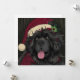 Magnifique chiot Terre-Neuve dessiné et coloré à la main portant un chapeau de Noël, fond noir et paillettes dorées