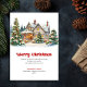 Celebrate the magic of the holidays with this charming watercolor Christmas house greeting card, beautifully designed in a cozy festive home style. Featuring soft minimalist details, a classic red and green color palette, and playful script lettering, this card captures the warmth and nostalgia of a peaceful winter scene. The hand-painted Christmas house illustration brings together glowing windows, fresh pine greenery, and holiday décor to create an inviting seasonal atmosphere.