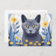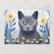 Cartes Pour Fêtes Annuelles Chat Bleu Russe Fleurs Jaunes