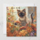 Cartes Pour Fêtes Annuelles Chat d'automne aux fleurs - Saison d'automne