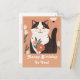 Un mignon chat avec des fleurs sur la carte de voeux personnalisée de l'arrière - plan de pêche.