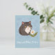 Un mignon chat avec fleur sur la carte de voeux personnalisée de l'arrière - plan bleu.