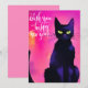 Une carte de vacances de Nouvel An étincelante avec une illustration ludique. Découvrez ce chat noir aux yeux verts et à l'ambiance urbaine rêveuse.