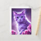 Cartes Pour Fêtes Annuelles Chat pourpre appelé Lavender avec roses