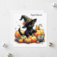 Cette carte plate saisonnière d'Halloween présente une image générée par IA d'un adorable petit chat noir fantaisiste portant un chapeau de sorcière. Il est assis parmi une variété de citrouilles et de gourdes et a des feuilles d'automne et des fleurs sur son chapeau. L'image est créée dans un style d'art splash au lavis d'aquarelle. Le message sur le devant dit "Joyeux Halloween", et sur le dos, vous pouvez écrire votre message. Utilisez les nombreux styles et couleurs de polices de Zazzle pour personnaliser selon vos préférences, ou laissez-le en blanc si vous préférez. Zazzle propose également de nombreux arrière-plans parmi lesquels vous pouvez choisir, ainsi que des icônes que vous pouvez ajouter pour rendre l'image vôtre. Amusez-vous à le créer exactement comme vous le souhaitez ! Si vous avez besoin d'aide pour personnaliser ce design, n'hésitez pas à me contacter, et je serai plus que ravi de vous aider. Vous pouvez me contacter à KarenCoffelt@wolfmoonartanddesign.com ou via Zazzle en cliquant sur
