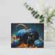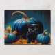 Cartes Pour Fêtes Annuelles Chaton noir et lune bleue Citrouilles Feuilles d'a