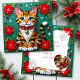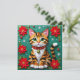 Cartes Pour Fêtes Annuelles Chatte tachetée mignonne avec poinsettias Noël per