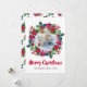 Cette conception de vacances chic présente votre photo préférée entourée d'une couronne florale à l'aquarelle de houx, de bas de Noël, de poinsettias et de cannes de bonbon dans les tons festifs rouge et vert. En dessous, en texte rouge moderne "Joyeux Noël" avec votre nom de famille et l'année en dessous en typographie prune. Au verso, un motif coordonné de bas de Noël à l'aquarelle et d'éléments floraux. Ajoutez simplement votre propre photo et modifiez le texte dans les zones de texte prévues à cet effet.