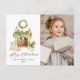 Envoyez vos voeux de vacances à vos proches avec notre belle carte postale de vacances photo. L'élégante carte postale de vacances dispose d'une couronne d'aquarelle et d'une cheminée ornée de décorations de Noël et de verdure. L'expression "Joyeux Noël" est affichée ci-dessous dans un script de calligraphie noir et moderne. Personnalisez le devant de la carte postale de Noël en y ajoutant votre nom, l'année et une photo. La carte postale s'inverse pour afficher votre adresse de retour, une photo supplémentaire et un message personnalisé.