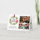 "Photos de la famille de la couronne de Noël Holly Pine Cone." Elégante aquarelle peinture d'une couronne de Noël fleurie de style moderne avec cône de pin, fleur de poinsettia rouge, roses sauvages blancs, fougères et feuillage de feuilles saintes contient le texte de typographie du script qui dit : "Ayez-vous un joyeux petit Noël!" Vos photos de famille sont faciles à télécharger en utilisant les modèles photo. A l'intérieur, une autre photo et votre message complet. Art par Audrey Jeanne Roberts, artiste titulaire d'une licence internationale, copyright.