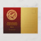 Un visuel élégant d'un cheval rouge avec des fleurs en cercle (inspiré de la découpe traditionnelle chinoise en papier) avec cercle doré superpose un motif traditionnel asiatique rouge et jaune + graphique "HAPPY NEW YEAR" en chinois et anglais et calligraphie chinoise ancienne pour "cheval" à droite sur la bande de couleur rouge dégradée. Sur le dos sont les mêmes dégradés arrière - plan (à gauche) pour les textes à personnaliser : votre message et l'adresse de retour + papier texturé doré (image imprimée) sur la droite. Conception sur carte postale de vacances verticale. Vous pouvez facilement personnaliser cette carte postale du Nouvel An lunaire en customisant l'accueil au verso ou supprimer pour votre note manuscrite, tapez votre adresse de retour. Correspondance vraie carte postale de vacances en papier.