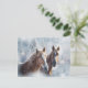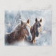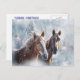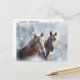 Bonnes Fêtes deux chevaux dans la neige cartes postales de Noël! Une belle façon d'envoyer des salutations simples pour les vacances. Deux chevaux heureux avec des pins chargés de neige.