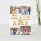 Une carte de Noël en or chic avec votre collage photo de famille autour d'un bel arbre en flocons de neige dorés avec Joyeux Noël et Bonne Année sur le devant en cursive. Personnalisez avec vos 4 photos préférées d'enfants sur le devant et une photo verticale complète à l'intérieur à gauche de cette carte de vacances branchée aux flocons de neige. Customisez votre message à l'intérieur.