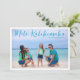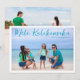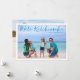 Carte de Noël de plage personnalisable avec votre photo tropicale préférée au soleil. Ajoutez une photographie complète de votre souvenir préféré de vos vacances sur l'île sur le devant et une autre au dos. Une belle carte de vacances côtière avec un design moderne et épuré et un joli script bleu sur l'image.