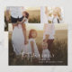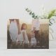 Cette carte de vacances moderne et chic or recouvert de photo famille nouvelles est le parfait accueil de vacances élégant. Ce design boho simple présente une calligraphie sophistiquée classique en or et crème vintages. Personnalisez l'avant de la carte avec une photo, votre nom de famille et l'année. Ajoutez 2 photos supplémentaires et une année facultative à la revue ou à la newsletter familiale au verso de la carte.