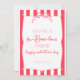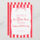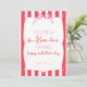Le design présente une bordure rayée rose et blanche avec un cadre central à pétoncles, accentué par un arc rose décoratif en haut. Sa palette de couleurs rose et blanc joyeuse, combinée à un mélange de styles et de tailles de police, crée une composition ludique et élégante.