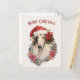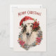 Cartes Pour Fêtes Annuelles Chien de Borzoi Santa Hat Rouge Poinsettias Noël