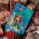Basset Hound Breed Dog Noël présente une aquarelle d'un Basset Hound avec une cape verte à capuchon pour chien de Noël et une aquarelle de galaxie.