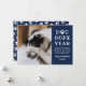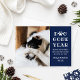 Ça a été une "année de chien mort" ! Montrez votre ami de quarantaine préféré avec ce carte photo moderne et amusant qui fera sourire vos amis et votre famille cette saison des Fêtes. Personnalisez le texte blanc personnalisé avec un message de vacances de santé et de bonheur, et incluez le nom de votre chien chiot et votre nom de famille avec l'année. Les couleurs bleu marine et blanc comprennent de mignons accents empreintes de pattes à l'avant et à l'arrière de la carte.