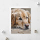 Un récupérateur d'or repose la tête sur le sol, regardant attentivement dans la distance. La fourrure molle du chien est représentée avec des coups de pinceau détaillés, soulignant son comportement calme et paisible.
